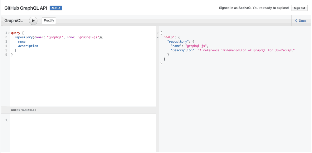 使用 GitHub 的 GraphQL API Explorer 可以很好地实践前面的例子。尝试以下查询: