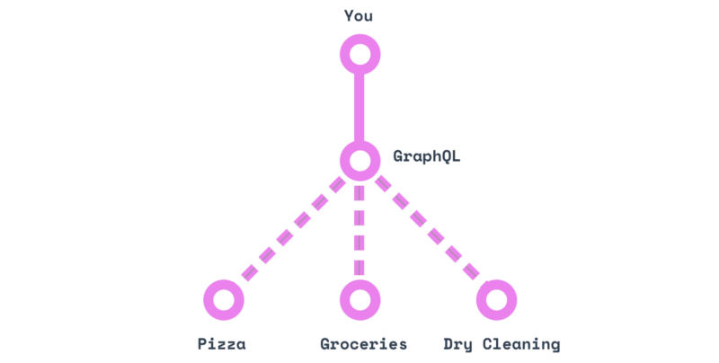 而 GraphQL 就像一个私人助理。只需要给出三个地方的地址,然后告诉 Ta 你想要什么(“衣服要干洗,一个大比萨饼,两打鸡蛋” ),然后就可以坐等结果了。
